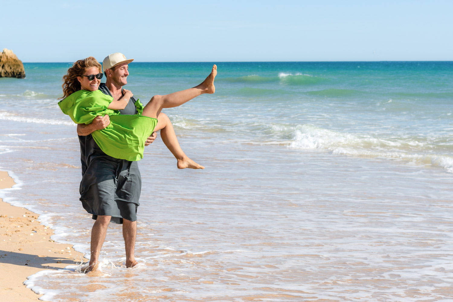 Die Vorteile liegen auf der Hand: kein Frieren im nassen Poncho und kein unangenehmer Geruch beim Auspacken der Strandtasche.